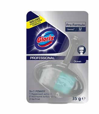 The Glorix Pro Formula Toilet Block Ocean is a professional 3-in-1 toilet block that ensures a hygienically clean and fresh toilet with every flush. It removes the breeding ground for bacteria. The block cleans, prevents limescale and urinary deposits, and leaves a pleasant ocean scent after every flush. The block is easy to hang over the rim of the toilet bowl.