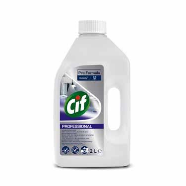 Cif Pro Formula Keukenontkalker is een krachtige, professionele ontkalker die speciaal is ontwikkeld voor gebruik in keukens. Het product is uitermate geschikt voor het verwijderen van (on)zichtbare en onhygiënische kalkaanslag in vaatwasmachines, au bain-marie bakken, kranen, koffie- en theekannen en spoelbakken. De niet-corrosieve formule zorgt ervoor dat metalen oppervlakken hun glans behouden zonder beschadigd te raken. Cif Pro Formula Keukenontkalker zit in een flacon met een inhoud van 2L.