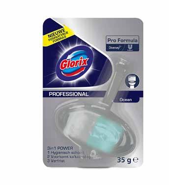 De Glorix Pro Formula Toiletblok Ocean is een professioneel 3-in-1 toiletblok dat zorgt voor een hygiënisch schoon en fris toilet bij elke spoelbeurt. Het verwijdert de voedingsbodem voor bacteriën. Het blok reinigt, voorkomt kalkaanslag en urineaanslag, en laat een aangename oceaangeur achter na elke spoelbeurt. Het blok is gemakkelijk over de rand van de toiletpot te hangen.