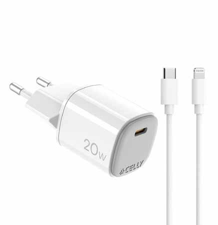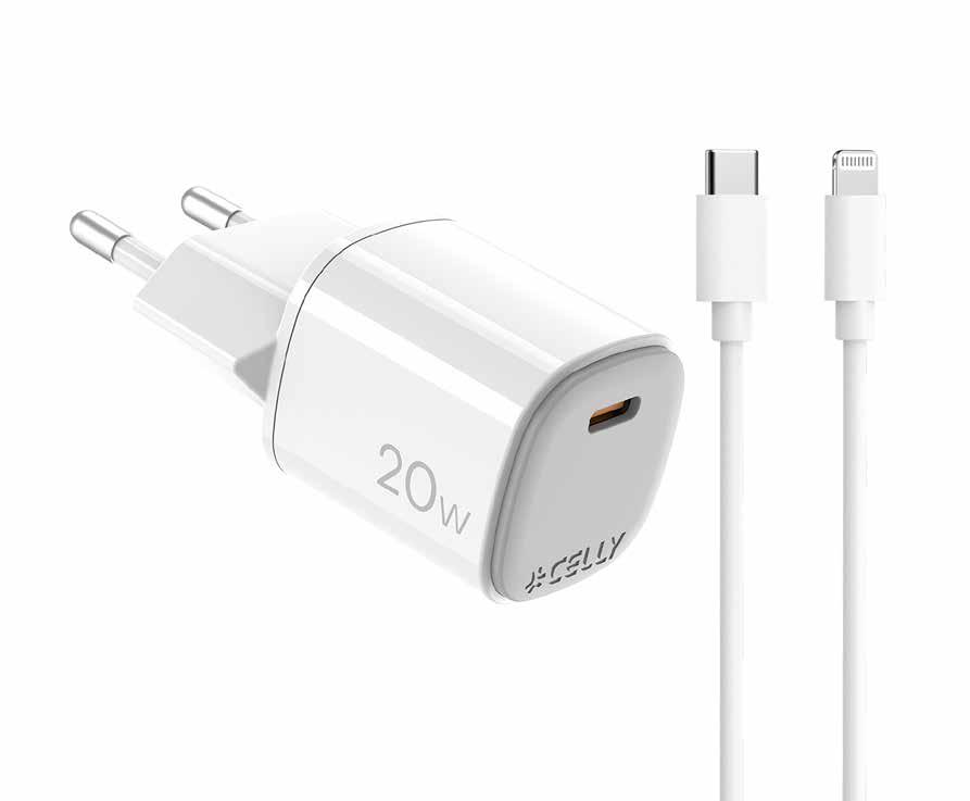 Mit diesem u Celly 20-Watt Ladegerät mit einem USB-C-Anschluss und USB-C auf LightningKabel bietet eine nahtlose Kombination aus Leistung und Komfort. Die GaN-Technologie ermöglicht ein schnelleres Laden in einem kompakteren Design, optimiert die Effizienz und reduziert die Wärmeentwicklung für ein fortschrittliches und effizientes Ladeerlebnis. Das hochwertige Design wird durch eine transparente Schutzfolie ergänzt, um das Ladegerät bis zum ersten Gebrauch in perfektem Zustand zu halten.