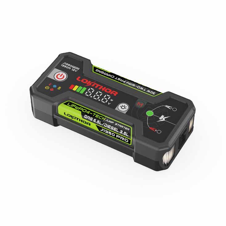 Le démarreur de voiture 12V J1350 Pro LifeP04 est fabriqué avec une énergie 100% sûre. Il délivre un courant de démarrage élevé de 1350A, adapté aux moteurs à essence jusqu’à 6,5L et aux moteurs diesel jusqu’à 3,5 litres. La fonction de charge rapide bidirectionnelle de 30W permet au démarreur d’être prêt en seulement 3 minutes de charge et de charger totalement votre véhicule en 1 heure à 1 heure _. Son bloc d’alimentation interne fournit 30W de puissance de sortie pour alimenter facilement vos appareils USB-C comme les téléphones, les tablettes et les ordinateurs portables. La technologie CONNECTMAX optimise l’efficacité du démarrage en détectant l’impédance de connexion de la pince, garantissant ainsi des performances fiables à chaque fois. Avec une torche LED équipée de trois modes dynamiques : torche, lumière stroboscopique et lumière SOS. Le Lokithor J1350 a une durée de vie au moins cinq fois supérieure à celle d’une batterie au plomb et deux fois supérieure à celle d’un démarreur au lithium. Un appareil haut de gamme qui dispose de 10 types de protections intégrées pour assurer une sécurité et une protection exceptionnelles. Le courant d’autodécharge incroyablement faible de 0,21mAh du démarreur de secours J1350 lifepo4 garantit une autonomie en veille de plus de 24 mois et garantit que votre appareil est toujours prêt à l’emploi.