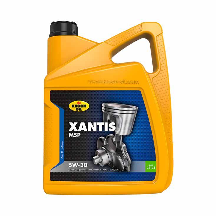 Kroon Oil Xantis MSP 5W-30 est une huile synthétique moderne qui économise le carburant, créée avec les dernières technologies de teneur modérée en SAPS, pour les voitures avec filtre à particules et/ou catalyseur. Kroon Oil Xantis MSP 5W-30 convient pour les moteurs essence et diesel récents des voitures avec filtre à particules et/ou catalyseur. Elle a été spécialement créée pour les voitures du groupe Stellantis (PSA, Opel, FCA) qui respectent la spécification FPW99.55535/03 la plus récente. De plus, ce produit convient aussi pour différents modèles PSA, Mercedes et GM pour lesquels l’une des spécifications suivantes est prescrite : PSA B71 2290, B71 2297 (climats chauds), MB 229.31/229.51/229.52 et GM Dexos 2.