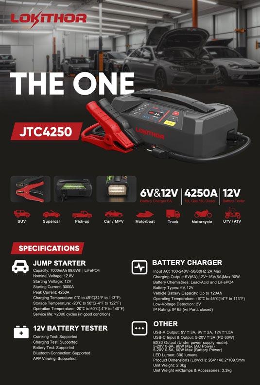 Le Lokithor The One JTC4250 est un démarreur multifonctionnel, un chargeur de batterie et un testeur en un seul appareil. Il délivre un courant de pointe de 4250A, capable de démarrer des véhicules ave des moteurs à essence de 10L et des moteurs diesel de 8L.