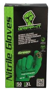 Gripp-It grüne Nitrilhandschuhe aus synthetischem Gummi. Ist stark, robust und reißfest. 100% latexfrei, ideal für Menschen mit Latexallergien. Optimaler Schutz und resistent gegen Chemikalien und Kontamination. Nitrilhandschuhe haben eine extrem hohe Zugfestigkeit, wodurch sie sehr schwer zu reißen und/oder zu brechen sind. Das Produkt wurde gemäß EN ISO 374-1:2016, EN ISO 374-5:2016 und EN 420:2003+A1:2009 getestet. 50 Stück in Spenderkarton.