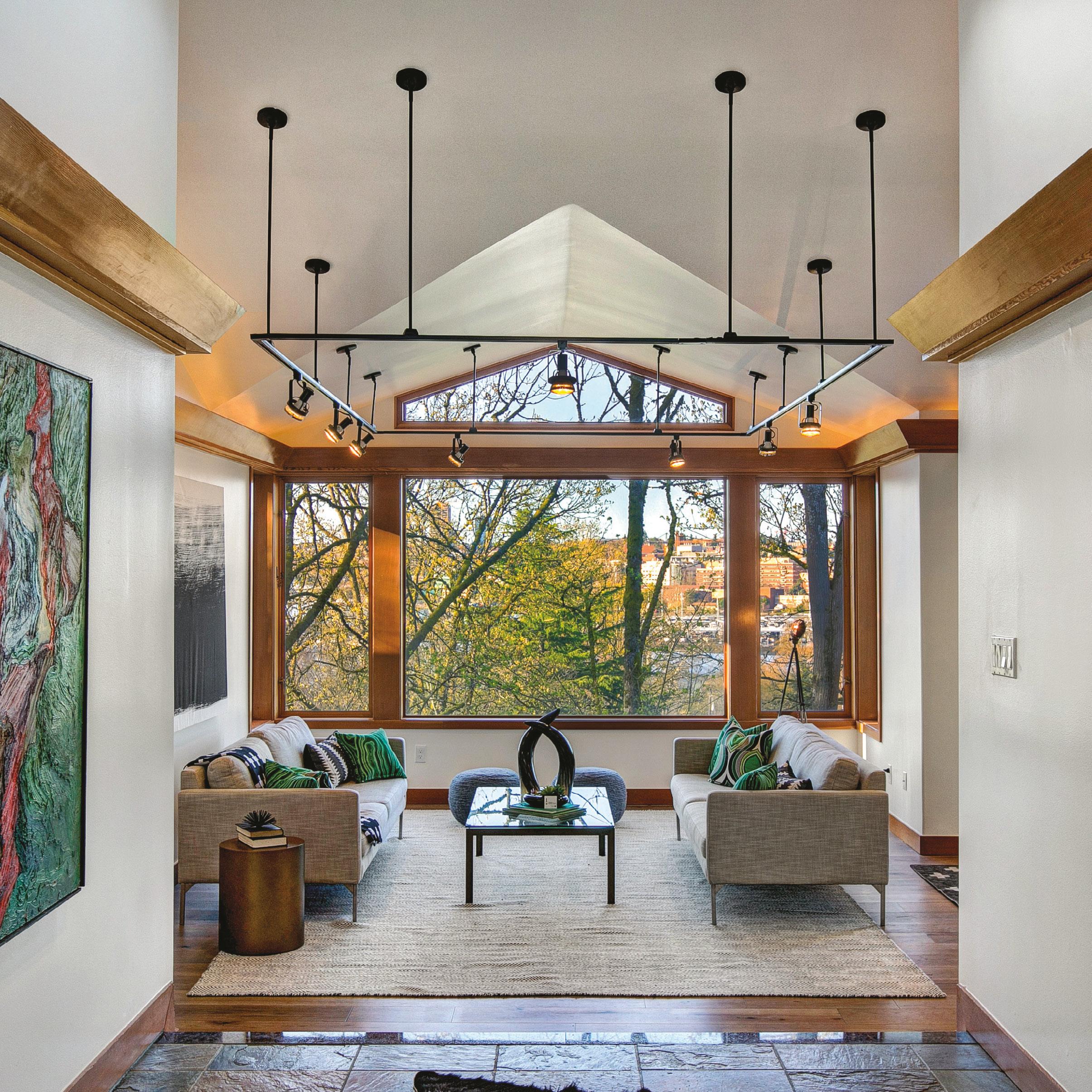 Flexible Floorplan. Versatile spaces multitask: a mezzanine room equipped with a Murphy bed and capacious closets grants privacy for remote work or overnight guests. The main-floor owner’s suite minimizes stairs; its dressing room/bath, recently used as a home gym, easily converts back thanks to integral plumbing.