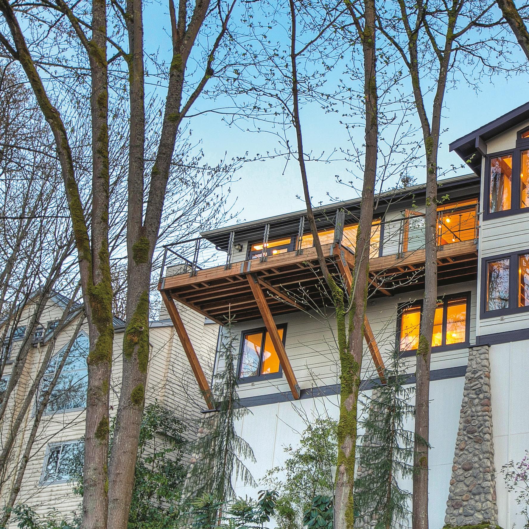 Luxurious, private retreat by award-winning local architect Curtis Gelotte, solidly engineered into verdant hillside in Olmsted-designed Interlaken Park. Versatile floorplan with 2 owner’s suites (one on main floor); picturesque Portage Bay and woodland views. Steps to hiking and running trails and pristine wildlife habitats, stroll to Capitol Hill amenities, 10-minute drive to downtown Seattle.