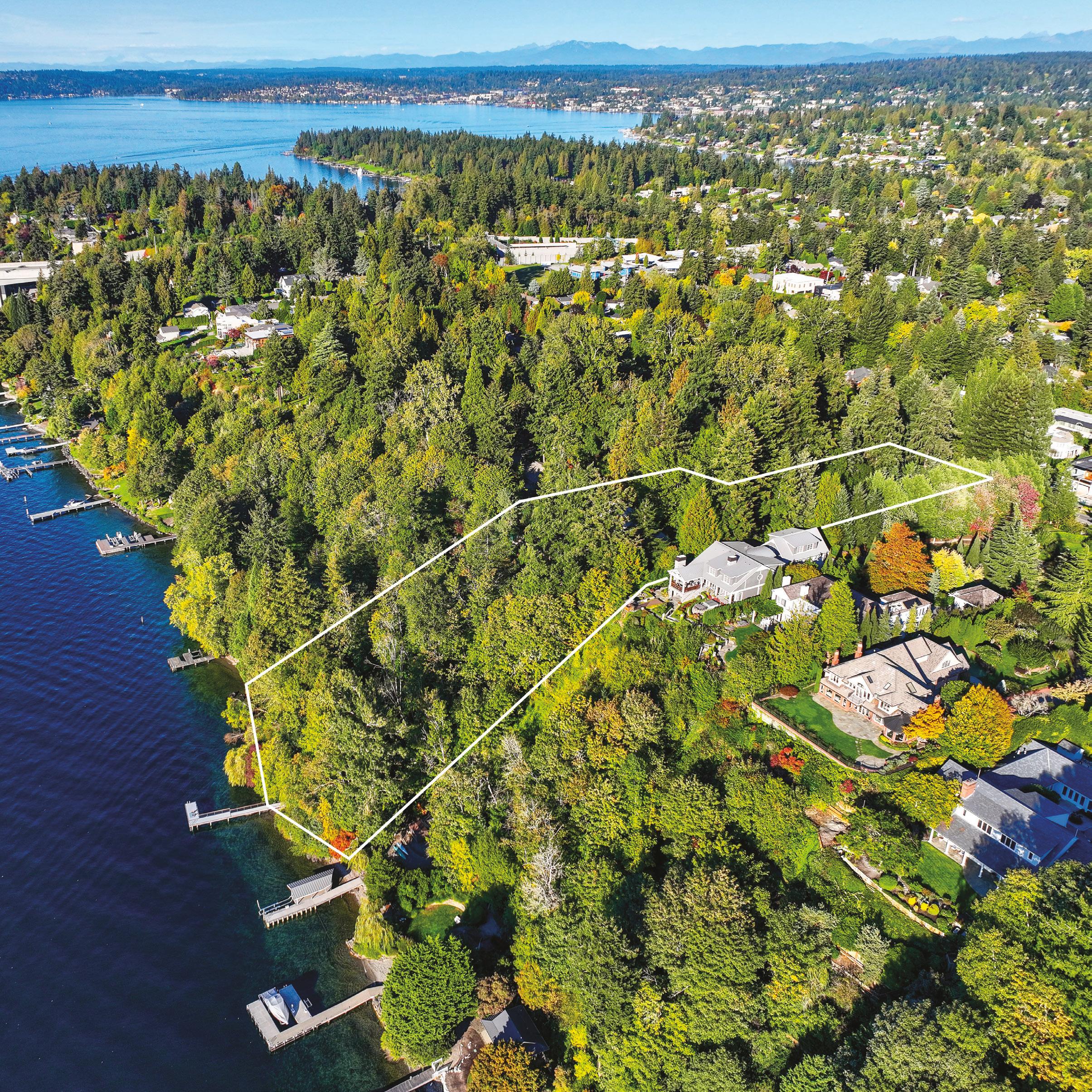 Generational opportunity to acquire three magnificent acres of Pacific Northwest woodland on Medina’s celebrated Gold Coast, one of the most affluent enclaves in the country. Legacy estate of three lots extending from Lake Washington to Evergreen Point Road comprises 215 feet of west-facing waterfront with a 70-foot dock for deep-water moorage; a 1938 5800 SF three-story Colonial Revival main residence; and various smaller structures. The gracious main residence, with greenhouse and view deck, is sited on a dramatic bluff with panoramic views of the Emerald City, dynamic boat traffic, vivid sunsets, serene Olympic Mountains.