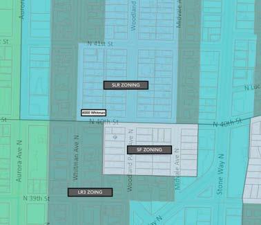 Address 4000 Whitman Ave N List Price $1,950,000 Existing Building SF (KCAR) $8,352 Potential Interior Redevelopment SF 13,462 SF Price Per Total Max Redevelopment is $162 Neighborhood Wallingford Maximum Potential Redevelopment SF 15,162 SF King County Tax ID 1931300185 Lot Size TBD Additional Potential Basement Garage SF 1,520 SF Potential Rooftop Deck SF 4000+ SF Existing Building Floorplate FT 115’ x 38’ Existing Building Height FT (Grandfathered) 46’ FT Potential Elevated Main Floor Terrace SF 300 SF Zoning RSL (M) 2023 Tax Assessed Value $9,942 4000 WHITMAN