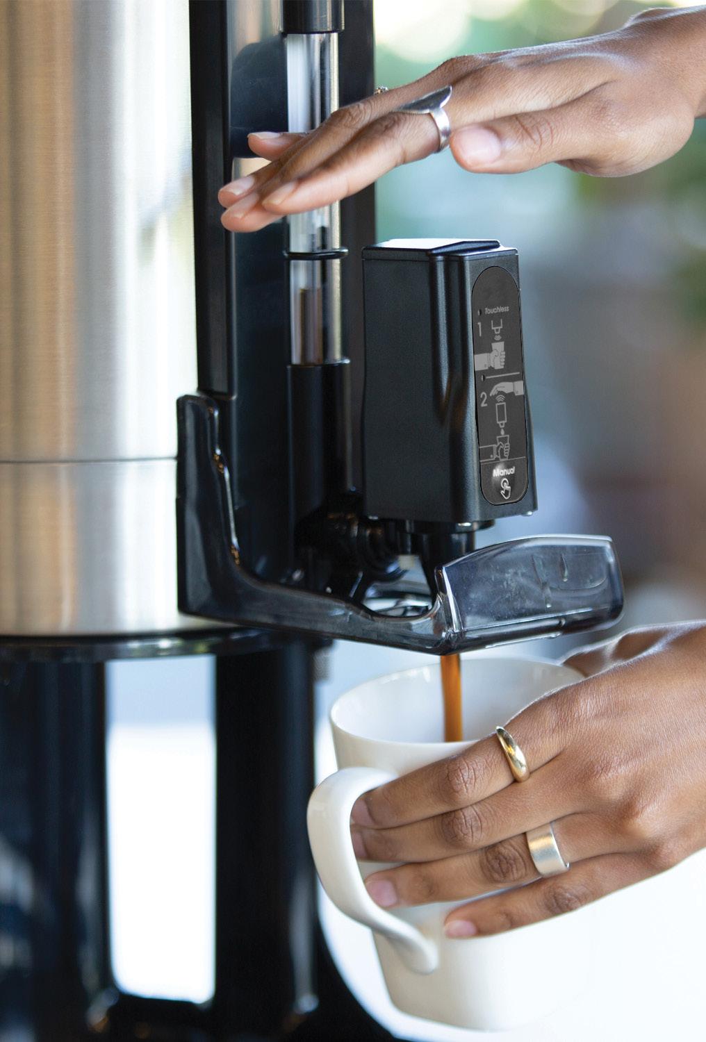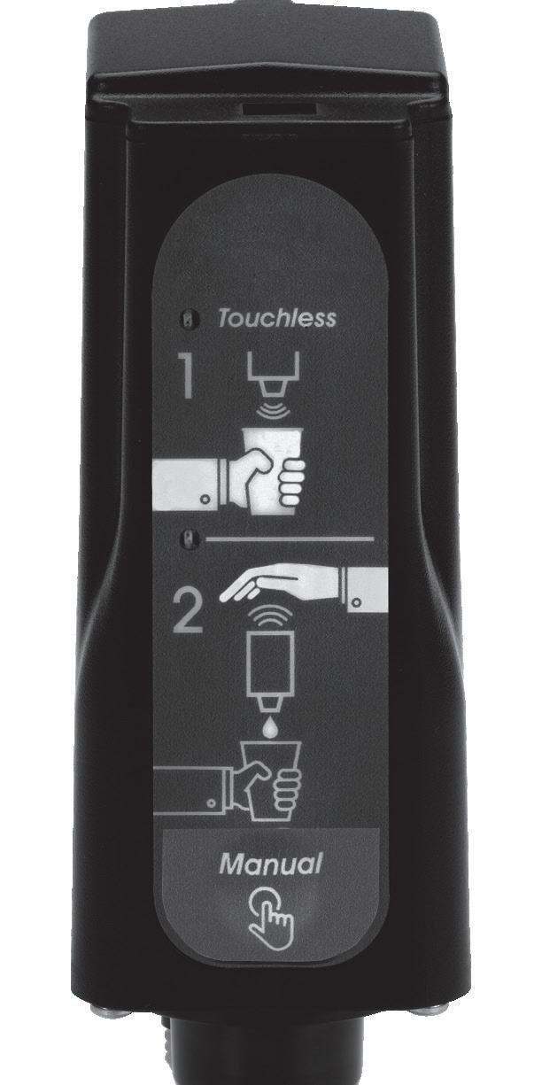 A battery-operated touchless valve to dispenser coffee, tea, juices, and other beverages from serving equipment. Installs in place of manual spigots Thermal Containers, Tea Urns, and Coffee Urns. The valve utilizes patent-pending technology to detect a cup underneath and a hand above to initiate the dispense.