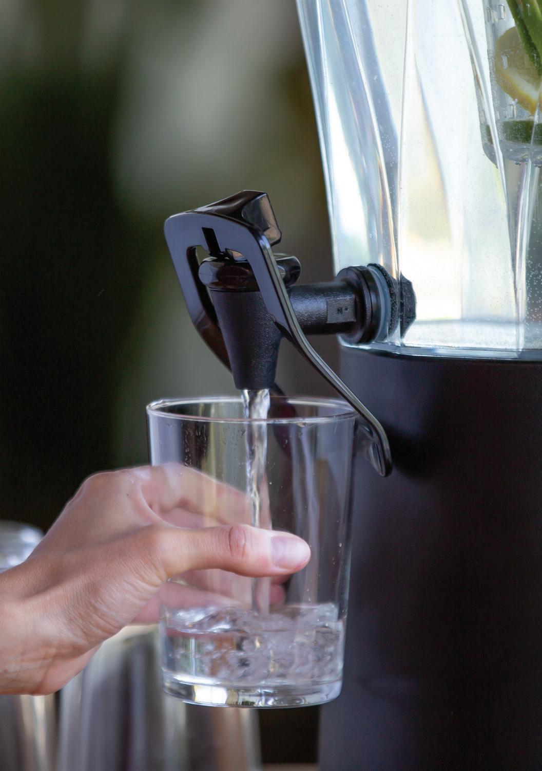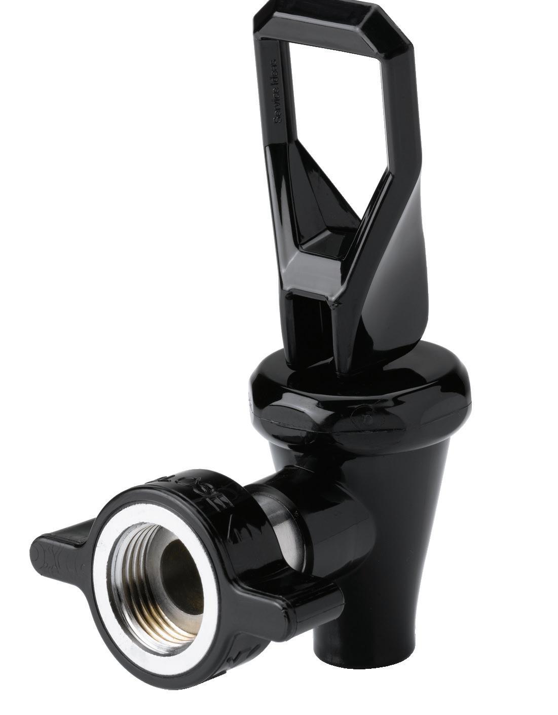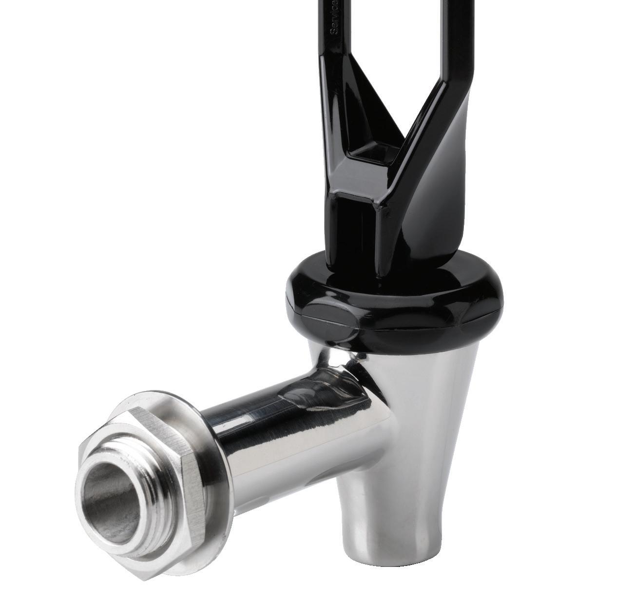 The Jewel Standard Service Ideas spigot is the best of both worlds. The two-toned shiny black plastic and polished stainless steel is BPA-free and matches a variety of decors and dispensers. Controlled pour with manually actuated lever, or twist and lock open for hands-free draining. This spigot works as a replacement for a broken or damaged spigot on a variety of dispensers, or as an OEM part.