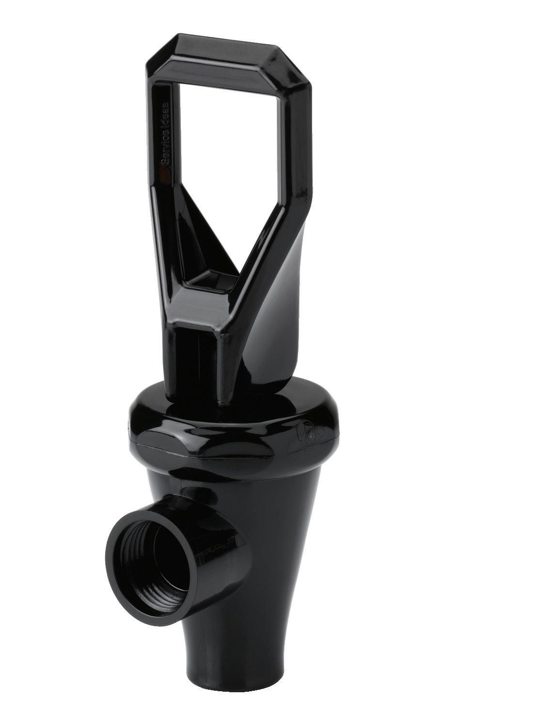 The Jewel Classic Service Ideas spigot is an economy version of our Jewel Standard spigot with an all-black nylon body, black nylon bonnet and stem. The shiny black plastic material is BPA-free and matches a variety of decors and dispensers. Controlled pour with manually actuated lever, or twist and lock open for handsfree draining. This spigot works as a replacement for a broken or damaged spigot on a variety of dispensers, or as an OEM part. NSF listed.