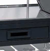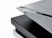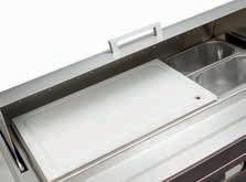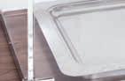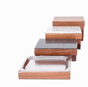 Struttura composta da 2 pezzi in acciaio inox 18/10 o una combinazione di acciaio inox e legno massiccio noce / due piastre eutettiche GN 1/2 / inserti GN 1/2 disponibili in granito scuro, granito chiaro e legno noce