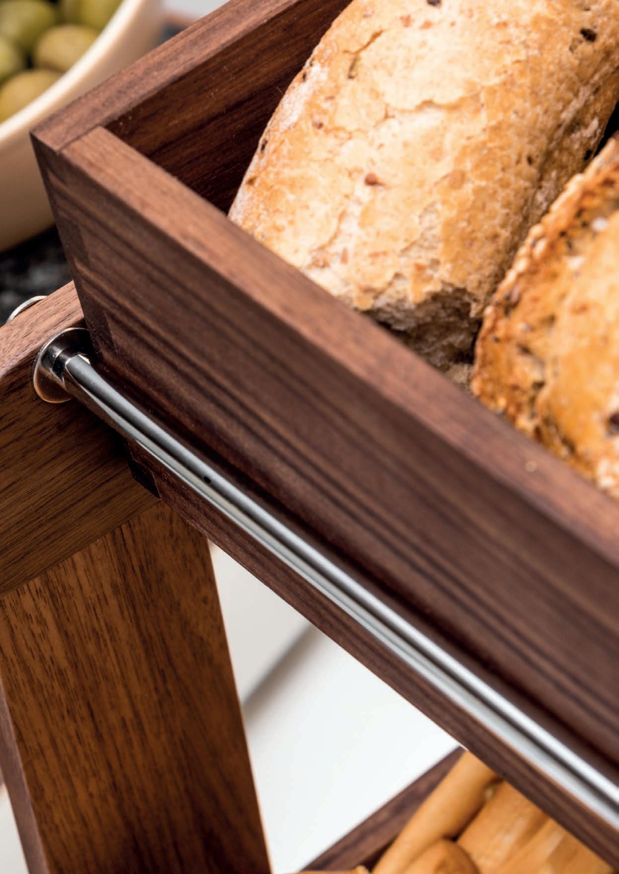 HARMONIOUS AND CUSTOMIZABLE DESIGN Wood and metal blend of style. Stainless steel and walnut wood, two versatile materials that achieve extraordinary success. A triumph of nature and a warm and linear style.