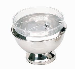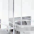 FANTASY INOX espositore | 2 bacinelle vetro | 2 coperchi | cool Inserto in PMMA satinato con fori / 2 coperchi con asola montati sull'inserto a snodo / 2 coppe in vetro incluse