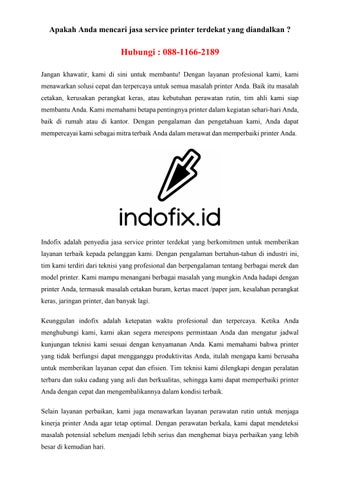 terpercaya sangat penting. Indofix hadir sebagai pilihan terbaik untuk jasa service printer di Jakarta, tangerang, depok, bogor dan bekasi. Dengan teknisi berpengalaman, penanganan masalah umum pada printer dan layanan panggilan yang nyaman, Indofix akan memastikan printer Anda kembali beroperasi dengan baik. Hubungi Indofix sekarang untuk mendapatkan layanan terbaik kami.
