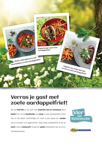 Verras je gast met zoete aardappelfriet! Ben je chef-kok en op zoek naar inspiratie voor je menukaart deze lente? EÄĆ n van de foodtrends voor 2019 is zoete aardappelfriet. Deze ziet er niet alleen aantrekkelijk uit, maar is ook ideaal om variatie aan te brengen in je bijgerechten. Staat zoete aardppelfriet al op de kaart in jouw restaurant? Vraag een gratis proefpakket aan op www. vierhetseizoen.be