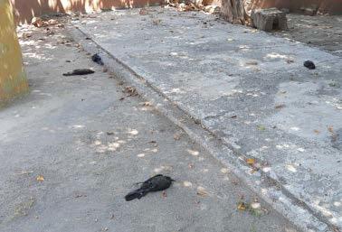 en la escuela primaria y el jardín principal de la localidad; hasta ese momento se contabilizaban aproximadamente un total 200 aves muertas, desde que inició el problema. De igual manera refiere que los perros y gatos que han estado en contacto con los cadáveres, han presentado signología de envenenamiento; y que un menor de edad que trató de curar a su mascota, sufrió de mareos, vómito e incoordinación por lo que tuvo que ser revisado por un médico.