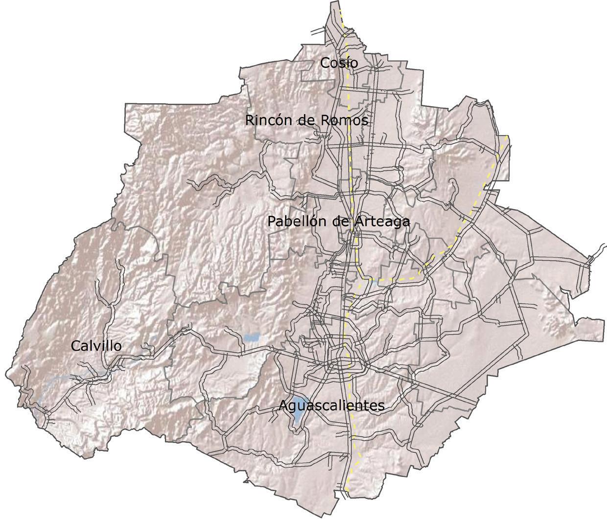 Los centros de población más importantes del estado son: la ciudad de Aguascalientes (capital del estado), Calvillo, Jesús María, Rincón de Romos y Asientos.