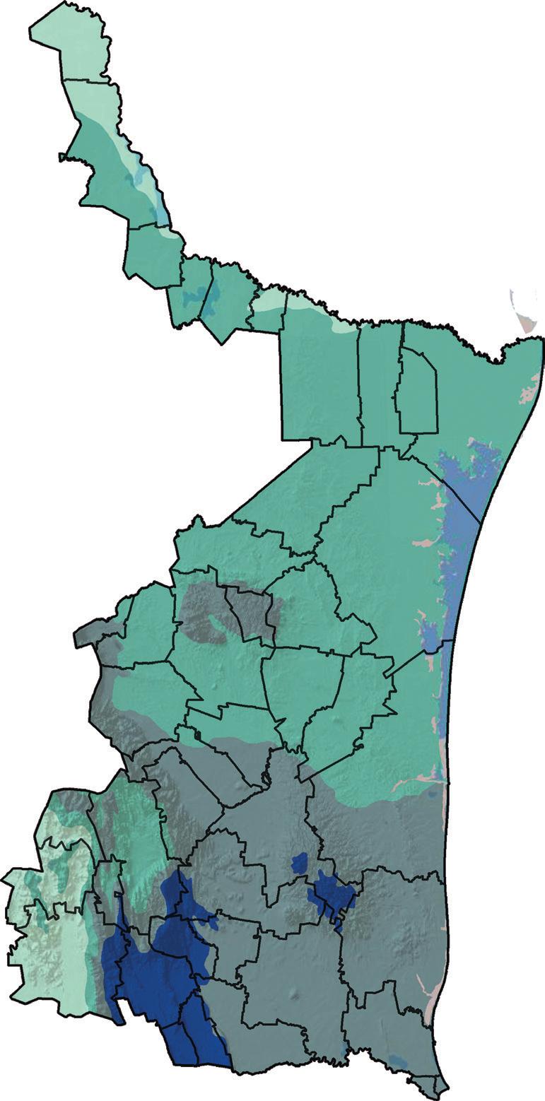 Precipitación: De 550 a 700 milímetros de precipitación de julio a diciembre.