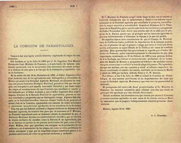 En este terreno cabe destacar la labor del Dr. Alfonso Luis Herrera López (1868-1942), biólogo y científico mexicano, quien realizó importantes estudios referentes al combate de diversas plagas tanto agrícolas como de ganado que dieron sustento a los primeros análisis de riesgo agropecuario, tema que se desarrollaría con los años, pero que de entrada permitió sentar las bases para la creación de la Comisión de Parasitología, primera dependencia gubernamental encargada del estudio y combate de plagas y enfermedades de las plantas en el país.5