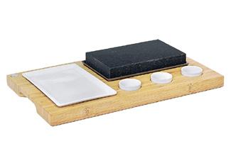 Piedra + base + 3 salseras de porcelana blanca + plato