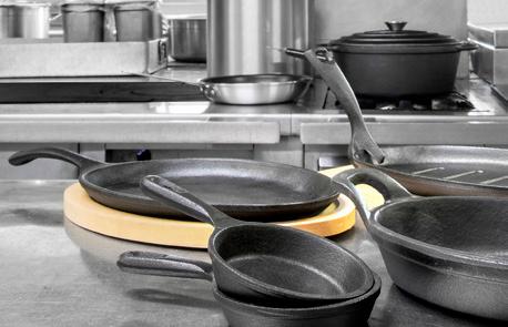 Wash with a soft sponge and hot water. Dry immediately with a smooth cloth or in the oven at a low temperature. Before storing spread a fine layer of oil on them using kitchen towel.