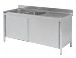 • Encimeras de profundidad 700 mm con fregadero y peto posterior de 100 mm de altura totalmente soldado.