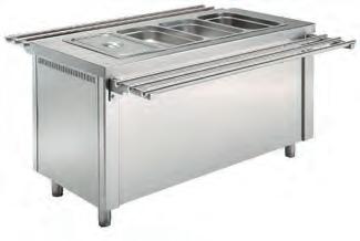 Serie Gastronom GN 1/1 y Serie 800 Contenedor neutro incorporado en laencimera para colocar los ingredientes mediante cubetas de GN 1/3 de profundidad 150 mm o de GN 1/4 de profundidad 150 mm (no incluidas en dotación), dependiendo si precisa de mayor capacidad de almacenamiento en cubetas o de una mayor superficie de trabajo en la encimera.