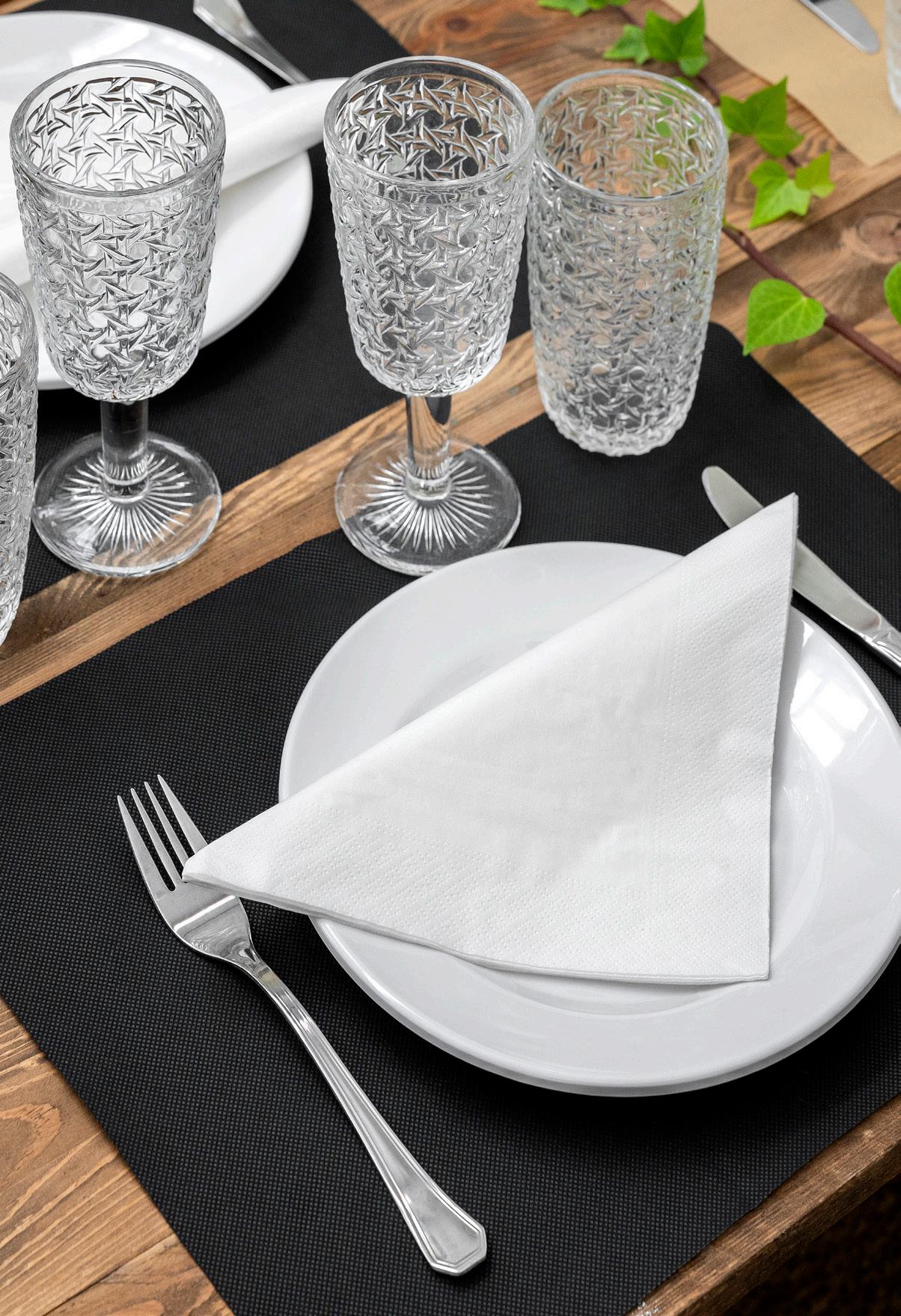 Notable for their softness and lightness, a classic for the catering establishment table. The larger number of layers gives them greater volume and resistance, without losing an agreeable texture. Available in white as well as a variety of different colours.