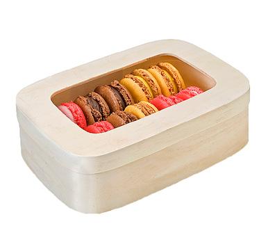 The box opens from the front, allowing you to easily place the dessert in and take it out of the box.