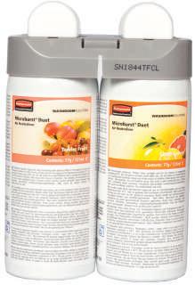 Microburst® Duet es un sistema de control de olores de doble fragancia que alterna entre dos aromas complementarios.