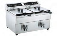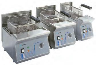 Freidora construida en acero inoxidable. Regulación termostática de la temperatura de 50° a 190 °C, incluyendo termostato de seguridad. Las resistencias junto con el panel son fácilmente extraíbles para facilitar la limpieza del tanque y operaciones de mantenimiento.