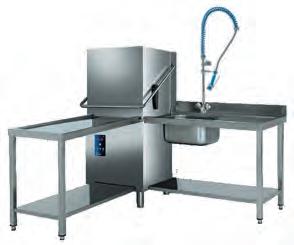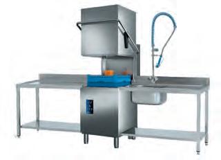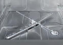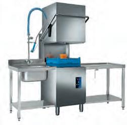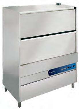 3 ciclos de lavado: Normal: 90” / Intenso: 180”. Continuo: Ciclo continuo hasta su parada manual. Incorpora doble sistema de filtros en la cuba y en el desagüe. Dispone de un micro de seguridad en la capota. Válvula anti-retorno. Termostato de seguridad. Dosificador de abrillantador. Brazos de lavado y aclarado en acero inoxidable. Consumo de agua: 3l / aclarado. Potencia de la cuba de lavado: 4,5 kW. Capacidad: 45l. Potencia del calderín de aclarado: 6 kW. Capacidad: 7l. Potencia de la bomba de lavado: 0,59 kW / 0,79 CV. Temperatura de lavado regulada a 60 °C y de aclarado a 85 °C. Dotación: 1 cesta CTE-11, 1 cesta CPE-18 y 2 cubiletes para cubiertos CUE-13.