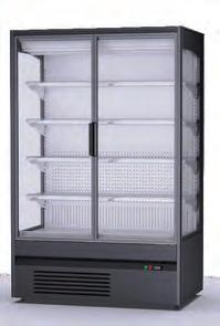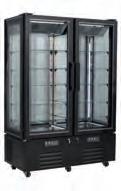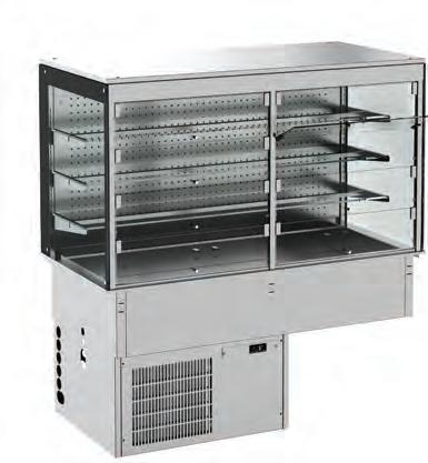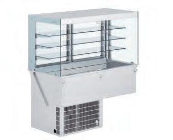 Vitrinas cúbicas refrigeradas con puertas abatablies posteriores. Cuba aislada de 115 mm de profundidad con la base regulable en altura. Eficiente sistema de refrigeración ventilado. Diseño mejorado. Temperatura de trabajo en la cuba: 0 °c / 4°c. En zona de vitrina abierta: 4°c / 10°c.