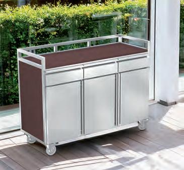 Las mesas terraza han sido especialmente diseñadas para establecimientos de hostelería que cuentan con espacios al aire libre, proporcionando una solución práctica, moderna y robusta para facilitar la preparación, servicio y recogida de alimentos y bebidas en exteriores.