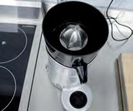Exprimidor de cítricos eléctrico automático de presión por palanca. Diseño ergonómico con hueco y soporte para alojar el vaso.