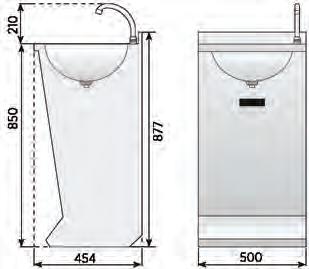 Programador electromecánico.. 1 ciclo de lavado de 120”. Incorpora micro de seguridad a la apertura de la puerta. Potencia de la cuba de lavado: 2,8 kW. Capacidad: 25l. Potencia del calderín de aclarado: 2,8 kW. Capacidad: 7l. Potencia de la bomba de lavado: 0,59 kW / 0,79 CV.
