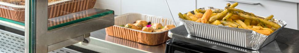 La gama de envases de aluminio coloreados son ideales para aperitivos, postres, salsas, aderezos, dulces y muchas otras posibilidades más. Disponen de tapa transparente que los protege, facilita su traslado y mantiene la temperatura de los alimentos. Se pueden calentar en horno de convección, microondas, horno de aire y vapor. También contamos con artículos de aluminio especialmente pensados para el sector de la rosticería (pollos, canelones, paellas, etc.), pastelería y, en general, para todo tipo de platos preparados para llevar o entregar a domicilio.