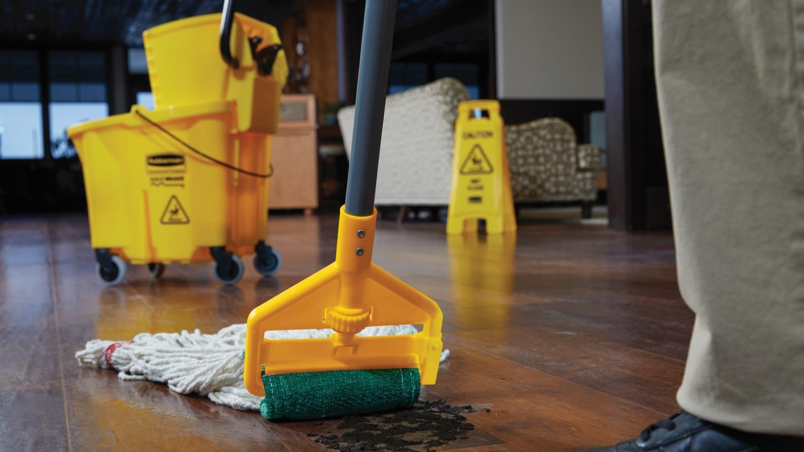 En el cuidado tradicional de pisos, incluyendo trapeadores, escobas y equipos