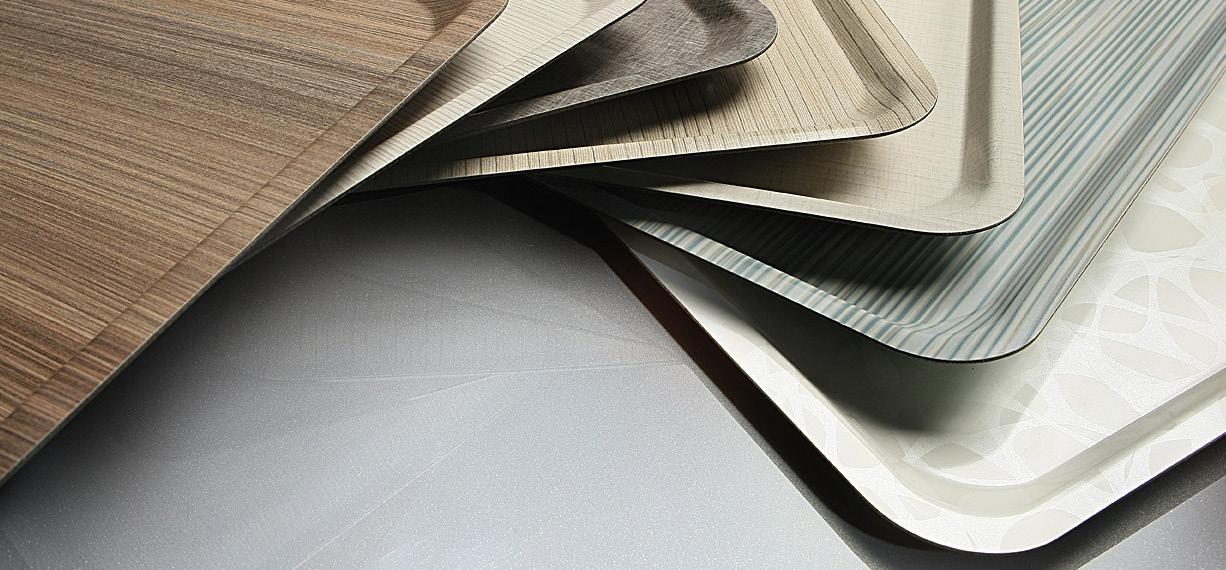 Absolute lightness and refined elegance, the plastic laminate makes the trays light and handy.