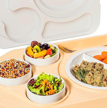 - Non-slip tray for service and meal consumption