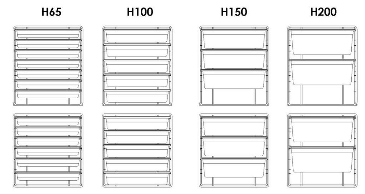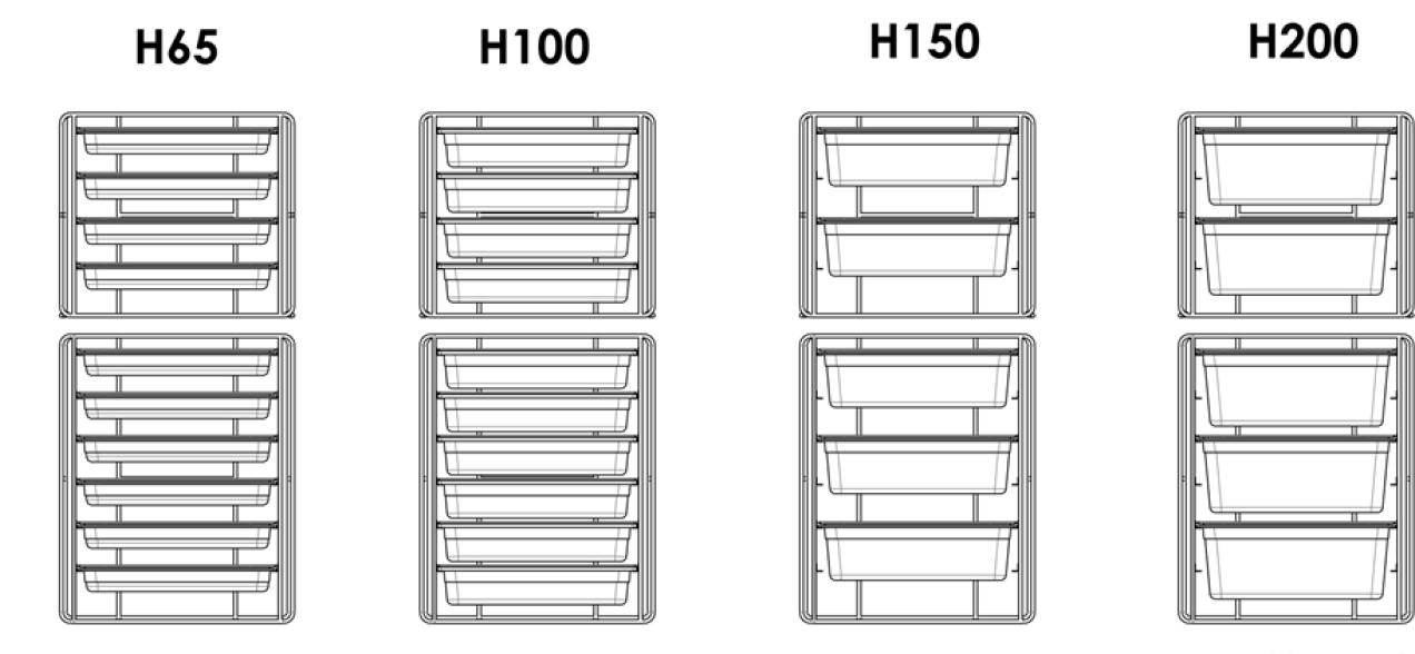 GN, EN and submultiples standard dimensions.