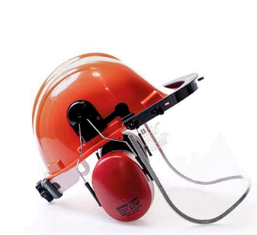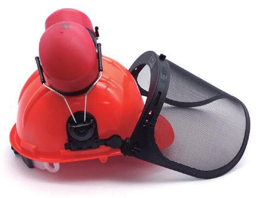 Conjunto forestal con casco, protector auditivo de SNR 25,9 DB y visor de malla abatible.