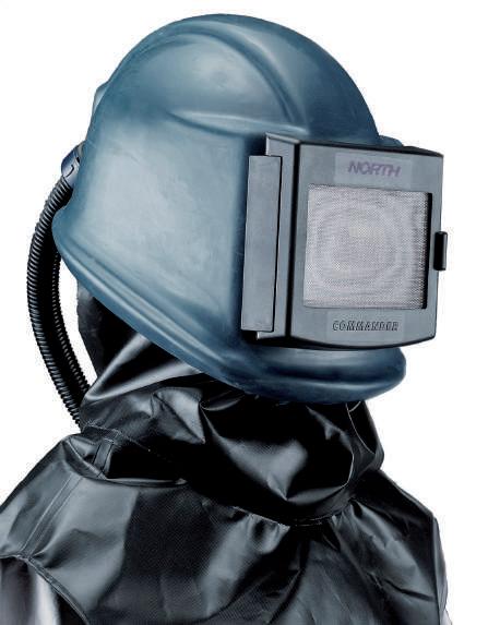 Casco con posibilidad de suministro de aire para proyección de abrasivos. Diseñada para trabajos de chorreo de arena. Adecuado para ambientes hostiles. Protege hombros, espalda y pecho frente a riesgos químicos.