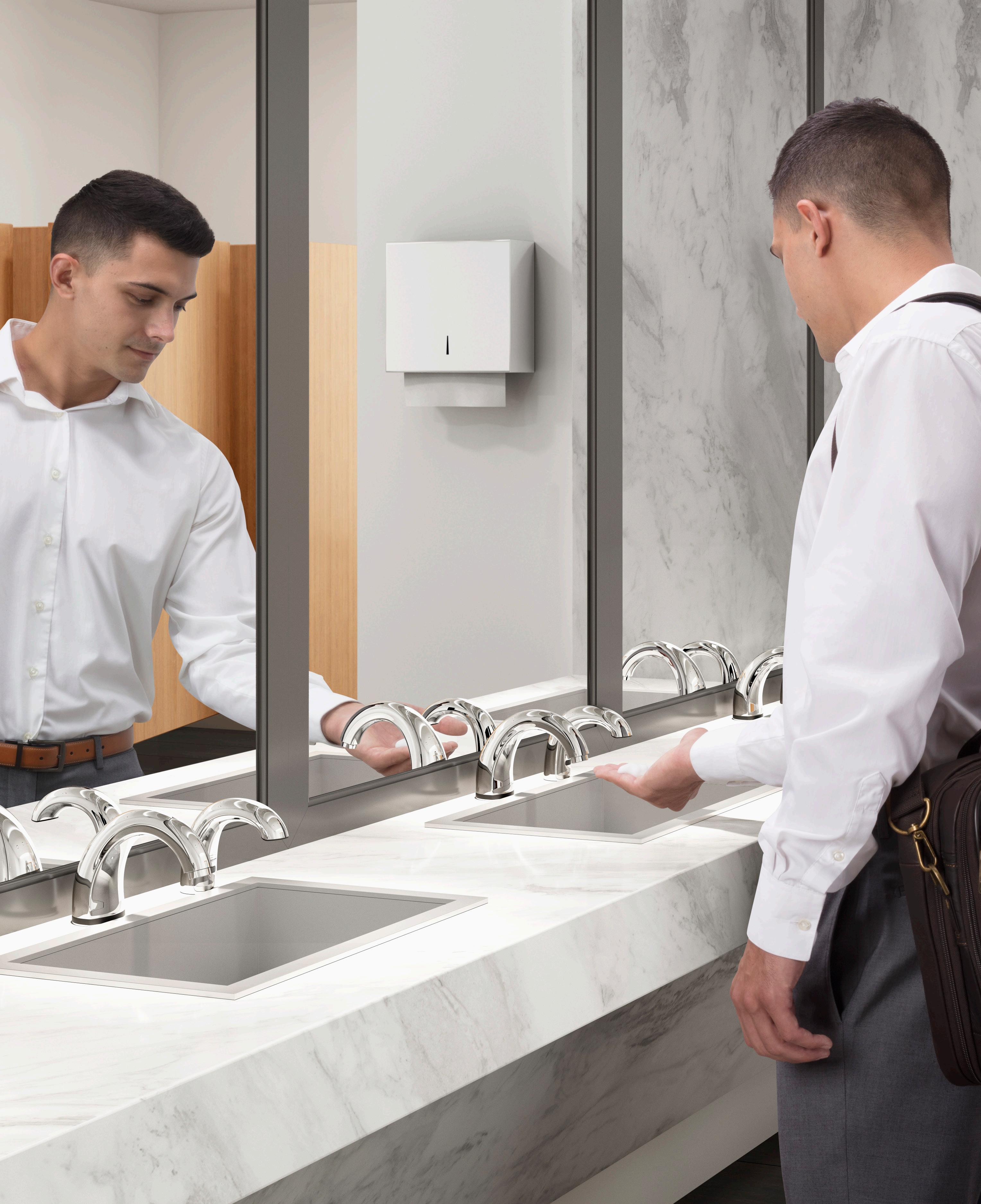 Los baños públicos son áreas de alto tráfico y, como resultado, los accesorios recolectan gérmenes y bacterias. Rubbermaid Commercial Products ofrece una línea completa de soluciones sin contacto para ayudar a reducir la contaminación cruzada en las manos de los usuarios.