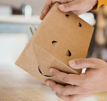 Ideales para establecimientos de take away, food delivery y grab & go, estas barquillas aseguran la entrega de alimentos en perfectas condiciones, sin riesgo de derrames, gracias a su sellado hermético y alta estanqueidad. No requieren films adicionales ni tapas separadas, simplificando el envasado. Además, una sección de cartón en la parte superior se puede retirar para mostrar el contenido a través de una ventana transparente, mejorando así la presentación del producto.