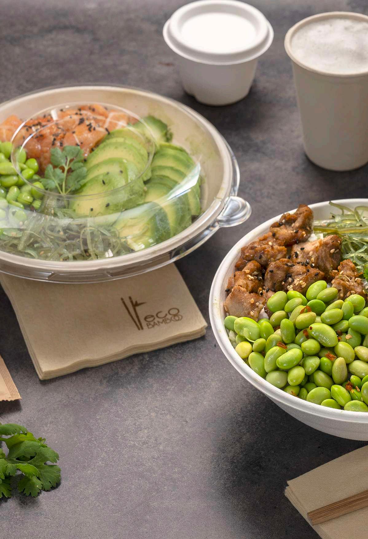 Nuestra línea de productos fabricados con PLA (ácido poliláctico) está certificada según la normativa EN 13432, que garantiza su compostabilidad y biodegradabilidad. Este material se obtiene a partir de materias primas como maíz, remolacha, caña de azúcar o mandioca. Ideales para contener alimentos fríos o a temperatura ambiente.