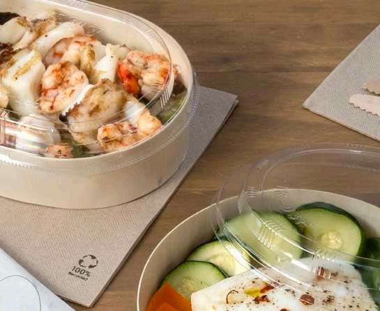 A nossa linha de produtos fabricados com PLA (ácido poliláctico) é certificada de acordo com a norma EN 13432, o que garante a sua compostabilidade e biodegradabilidade. Este material é obtido a partir de matérias-primas como milho, beterraba, cana-deaçúcar ou mandioca. Ideais para armazenar alimentos frios ou à temperatura ambiente.