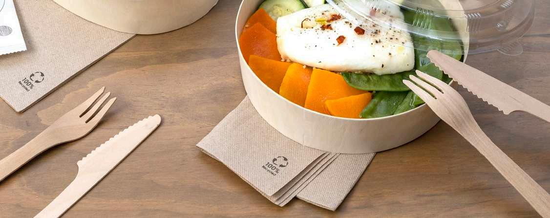 La planta de bambú es una de las que tiene un crecimiento más rápido y constante del planeta, incluso sin necesidad de demasiada agua. Eso la hace ideal para la fabricación de productos de hostelería de un solo uso, como palillos, picks y cubiertos. Aquí encontrará una amplia variedad de artículos, que destacan por su ligereza y resistencia, pero que además son sostenibles, puesto que el bambú es un material totalmente renovable y biodegradable.