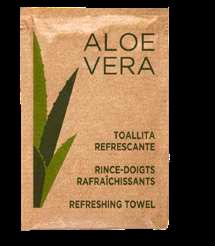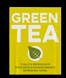 Impregnadas con agua, alcohol y fragancias de limón, té verde o aloe vera. Se presentan en caja dispensadora.